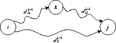 ...,~P^{n-1}$ aufgebaut, die an Position $P^k_{i,j}$ den vorletzten Knoten auf dem kürzesten Weg von $i$ nach $j$ notiert, der nur über die Zwischenknoten $0, 1, 2, ..., k$ läuft.