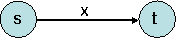 Die Wirkungsweise der Überführungsfunktion $ {\delta} $ kann durch einen Zustandsüberführungsgraphen beschrieben werden. In diesem Graphen führt eine mit $x$ beschriftete Kante von Knoten $s$ zu Knoten $ t $, falls gilt: $ {\delta} (s, x) = t $.