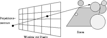 Dann schickt man für jedes Pixel im Window einen Augstrahl vom