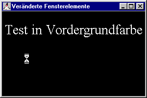 Das folgende Beispielprogramm erzeugt ein Fenster mit einer Titelleiste, gesetzter Vorder- und Hintergrundfarbe und der Eieruhr als Cursor. Zusätzlich besitzt das Programm das in Abbildung 27.3 gezeigte Icon, das beim Minimieren des Programms und in der Taskleiste angezeigt wird.