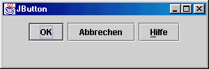 Das Beispielprogramm in Listing 37.7 erzeugt drei Buttons und ordnet sie nebeneinander in einem JFrame an: