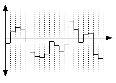 Das Sound-API macht eine sehr grundlegende Unterscheidung zwischen gesampeltem Sound und Midi-Sound. Beim Sampling, das wir in diesem Abschnitt behandeln wollen, wird ein Audio-Signal in viele kleine Stücke zerlegt, deren Amplitude in sehr kurzen Abständen mit Hilfe eines Analog-Digital-Konverters gemessen wird: