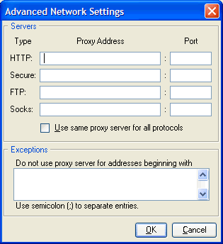 Check this to use the browser default proxy settings. This is the default setting (checked).